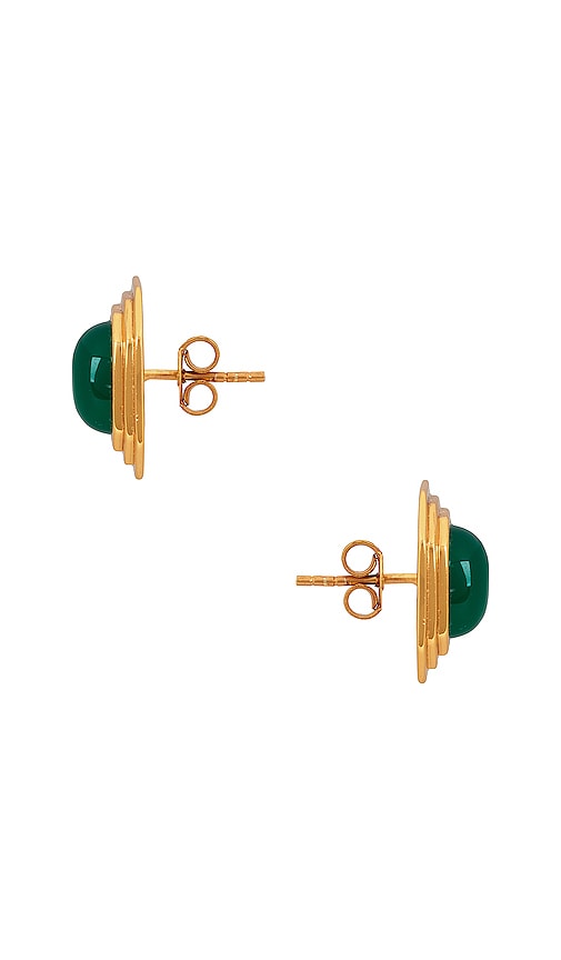 AUREUM Aisling Earrings in Metallic Gold. AUREUM Aisling Earrings in Metallic Gold. 24k gold vermeil with green onyx at center. Imported. Post-back closure. AEUM-WL20. AISLING. Shop the latest in fashion from AUREUM