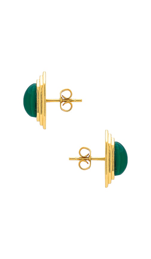 AUREUM Aisling Earrings in Metallic Gold. AUREUM Aisling Earrings in Metallic Gold. Gold-tone metal with emerald-tone crystal at center. Made in India. Post-back closure. Measures approx 0.75 W x 0.75 H. AEUM-WL38. PLATEDAISLING. Shop the latest in fashion from AUREUM