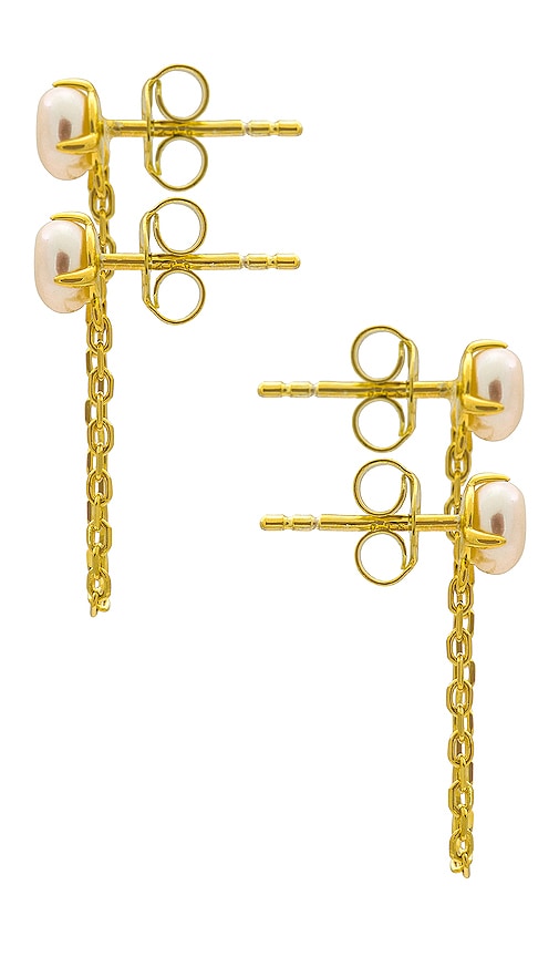 By Adina Eden Double Pearl Chain Earring in Metallic Gold
