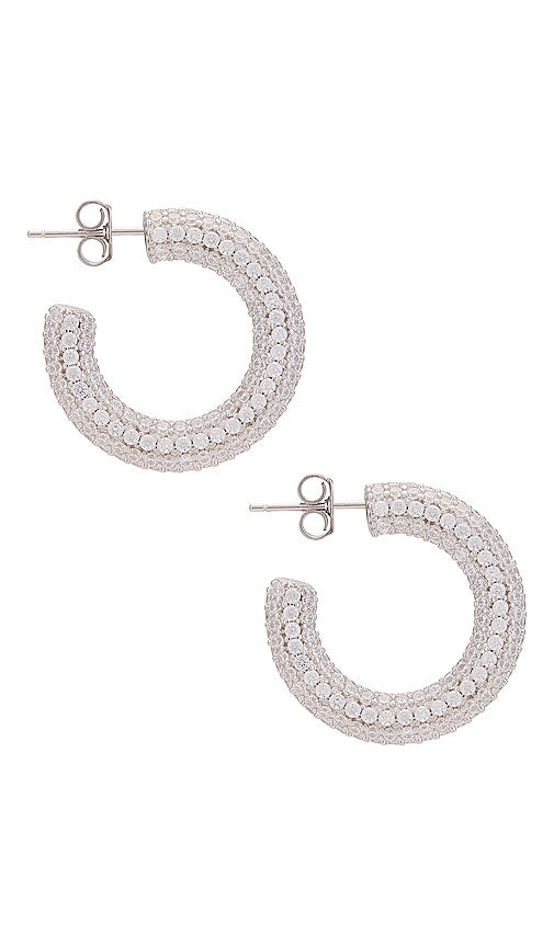 By Adina Eden Jumbo Pave Hoops in Metallic Silver. By Adina Eden Jumbo Pave Hoops in Metallic Silver. Sterling silver hoops with clear cubic zirconia. Made in China. Post-back closure. Measures approx 1 in diameter. AJEW-WL240. E86369-SIL-25MM-942. When a woman dresses herself in By Adina Eden, she chooses sparkle and glimmer. She is making a statement for herself and for the world: I will shine. When a woman shines, she will rise to her full potential. With By Adina Eden, you shine and rise...you feel more beautiful, and when you feel more beautiful, you feel more confident, more powerful and more you. Shop the latest in fashion from By Adina Eden