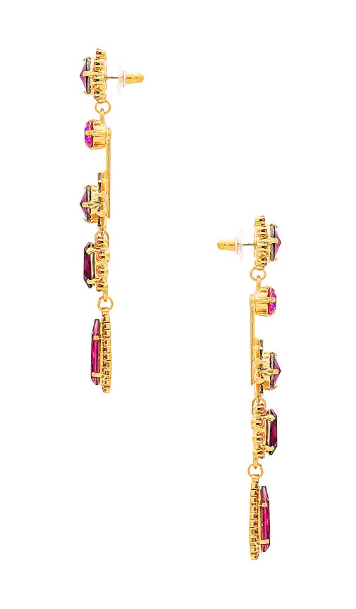 Elizabeth Cole Astraea Earrings in Pink. Elizabeth Cole Astraea Earrings in Pink. Gold-tone plated with various pink stone charms. Made in USA. Post back closure. Measures approx 4 dangling. ELIZ-WL515. FW23E18-FU. This season Elizabeth Cole brings out the gold in her winter collection of fabulous jewelry. Great for gift giving, these items are perfect stocking stuffers for all your stylish family and friends. Shop the latest in fashion from Elizabeth Cole