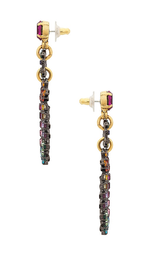 Elizabeth Cole Rhiannon Earrings in Pink. Elizabeth Cole Rhiannon Earrings in Pink. Gun metal with multi-colored crystals. Made in USA. Post-back closure. Measures approx 2.5 dangling. ELIZ-WL521. H23E2-RBW. This season Elizabeth Cole brings out the gold in her winter collection of fabulous jewelry. Great for gift giving, these items are perfect stocking stuffers for all your stylish family and friends. Shop the latest in fashion from Elizabeth Cole