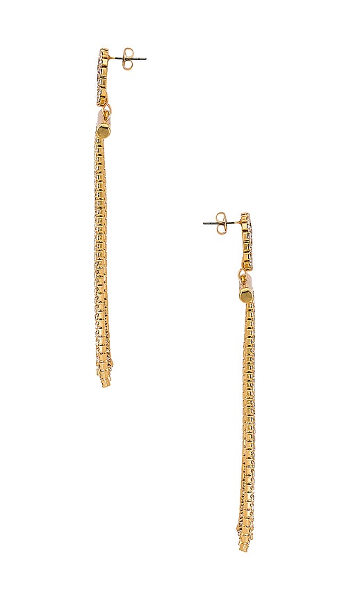 Ettika Crystal Dangle Earring in Metallic Gold. Ettika Crystal Dangle Earring in Metallic Gold. 18k gold-plated with cubic zirconia crystals. Made in China. Post-back closure. Measures approx 3.75 dangling. ETTI-WL1052. E3363.CLR.G. Ettika was dreamt to life with a few meaningful words in mind: Give. Wear. Stack. Love. Ettika fashioners, Ettie Rafaeli and Joey Rafaeli feed their design drive with daily inspirations and delights soaked up while living the sunny Los Angeles California lifestyle. From the sandy beaches of Malibu, to the neon bright sparkling city lights of Tinseltown, the designers naturally incorporate a kiss of the LA laid-back-luxe lifestyle into each inspired piece. Shop the latest in fashion from Ettika