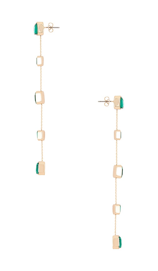 Ettika Drop Earrings in Green. Ettika Drop Earrings in Green. 18k gold plated earrings with emerald crystals. Made in China. Post-back closure. Measures approx 4.25 dangling. ETTI-WL1162. E3782.GRN.G. Ettika was dreamt to life with a few meaningful words in mind: Give. Wear. Stack. Love. Ettika fashioners, Ettie Rafaeli and Joey Rafaeli feed their design drive with daily inspirations and delights soaked up while living the sunny Los Angeles California lifestyle. From the sandy beaches of Malibu, to the neon bright sparkling city lights of Tinseltown, the designers naturally incorporate a kiss of the LA laid-back-luxe lifestyle into each inspired piece. Shop the latest in fashion from Ettika