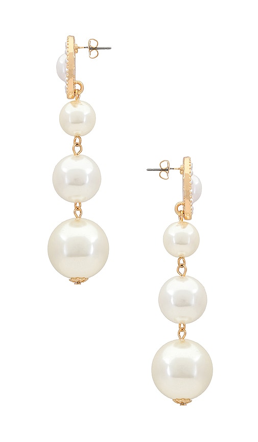 Ettika Graduating Pearl Dangle Earrings in Metallic Gold
