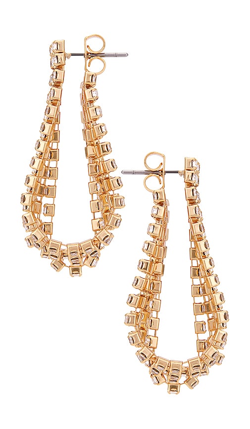 Ettika Wrap Statement Earring in Metallic Gold. Ettika Wrap Statement Earring in Metallic Gold. 18k gold-plated metal with clear crystals. Made in China. Post-back closure. Measures approx 1.25 dangling. ETTI-WL1267. E4014.CLR.G. Ettika was dreamt to life with a few meaningful words in mind: Give. Wear. Stack. Love. Ettika fashioners, Ettie Rafaeli and Joey Rafaeli feed their design drive with daily inspirations and delights soaked up while living the sunny Los Angeles California lifestyle. From the sandy beaches of Malibu, to the neon bright sparkling city lights of Tinseltown, the designers naturally incorporate a kiss of the LA laid-back-luxe lifestyle into each inspired piece. Shop the latest in fashion from Ettika