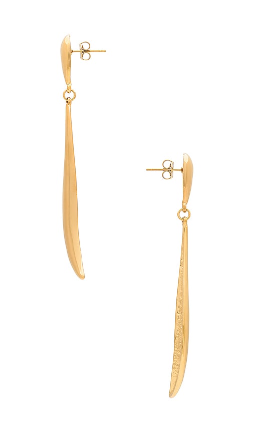 Heaven Mayhem Wave Earrings in Metallic Gold. Heaven Mayhem Wave Earrings in Metallic Gold. Gold-tone metal. Made in China. Post-back closure. Measures approx 3.25 dangling. HMAY-WL31. HMN-210. Shop the latest in fashion from Heaven Mayhem