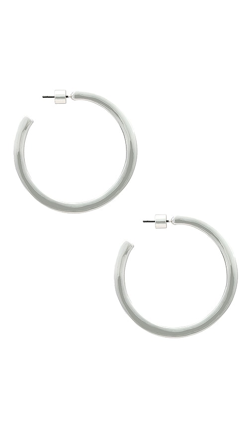 Jenny Bird Slim Doune Hoops in Metallic Silver. Jenny Bird Slim Doune Hoops in Metallic Silver. Silver-plated metal. Made in China. Hinge closure. Measures approx 1.5 in diameter. JENR-WL150. JB3319-HPS. Self-taught designer Jenny Bird grew up immersed in the scenic nature of Elora, a tiny, artistic town in Ontario, Canada. With an innate desire to build something and an eye for beauty, Jenny is committed to a personal philosophy where each piece designed is deeply inspired and well thought-out; produced in the highest quality, and sold at a fair price. Since the line's debut in 2008, Jenny Bird is carried in over 700 retailers worldwide, and most recently was bestowed the honor of being named Canada's Accessory Designer of the Year. Shop the latest in fashion from Jenny Bird