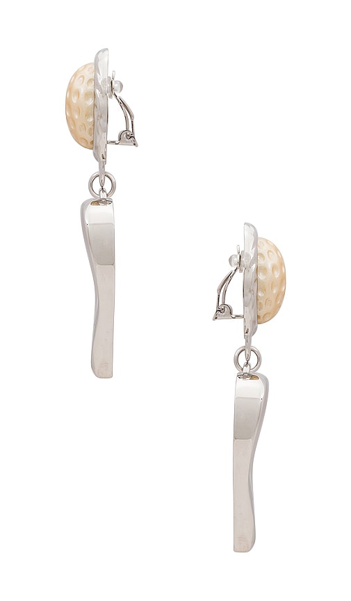 Julietta Sally Ride Earrings in Metallic Silver. Julietta Sally Ride Earrings in Metallic Silver. Silver-tone plated brass with resin pearl accent. Made in USA. Clip closure. Please note, no piercing required. Measures approx 3.3 W x 1.9 H. JIET-WL16. J4011-S. Shop the latest in fashion from Julietta
