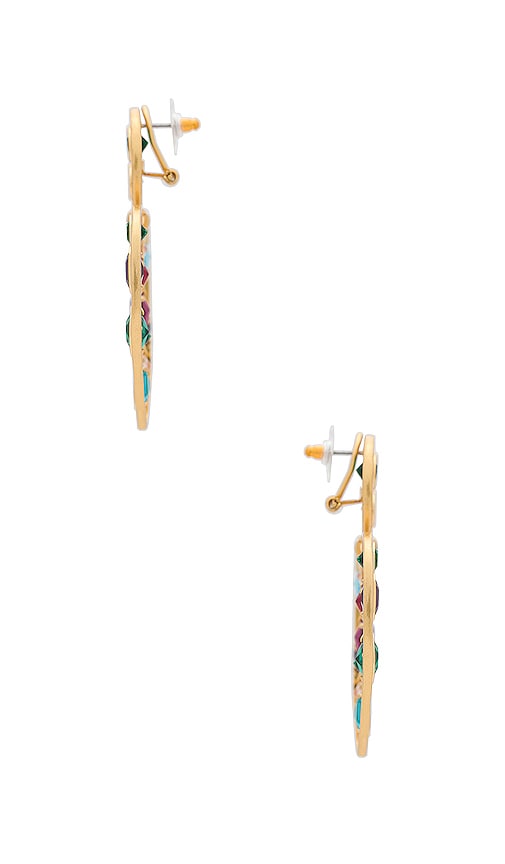 Lele Sadoughi Heart Crystal Earrings in Metallic Gold. Lele Sadoughi Heart Crystal Earrings in Metallic Gold. 14k gold-plated metal embellished with multi-color crystals. Made in China. Post-back closure. Measures approx 2.5 dangling. LELE-WL222. LS1799LS. Lisa Lele Sadoughi launched her eponymous jewelry collection in 2012, with a tremendously successful category expansion consisting of jeweled headbands, sunglasses, bags, and home decor. Her vivid and personality-packed designs, including her signature handmade acetate floral earrings, are maximal, colorful and unabashedly feminine. Shop the latest in fashion from Lele Sadoughi