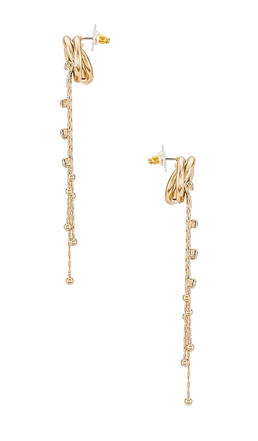 petit moments Echo Earrings in Metallic Gold. petit moments Echo Earrings in Metallic Gold. Gold-tone metal. Made in China. Post back closure. Crystal accents. Measures approx 3.5 dangling. PETM-WL156. 25E1244. petit moments is an emerging woman-owned brand from Los Angeles, CA. They believe that everyone should have the opportunity to express themselves through clothing and accessories without being discouraged by a price tag. Their mission is quite simple - they want to encourage our community to enjoy every moment that life has to offer while being conscious of our environmental impact. petit moments has shifted to be more environmentally conscious by implementing initiatives at the corporate level and providing their audience with sustainable accessory options. Continue to enjoy the moment, while helping the planet. Shop the latest in fashion from petit moments