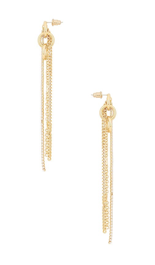 petit moments Vedder Earrings in Metallic Gold. petit moments Vedder Earrings in Metallic Gold. Gold-tone metal with interlooped hoops, chain links, and clear crystals. Made in China. Post-back closure. Measures approx 4 dangling. PETM-WL385. VEDDER. petit moments is an emerging woman-owned brand from Los Angeles, CA. They believe that everyone should have the opportunity to express themselves through clothing and accessories without being discouraged by a price tag. Their mission is quite simple - they want to encourage our community to enjoy every moment that life has to offer while being conscious of our environmental impact. petit moments has shifted to be more environmentally conscious by implementing initiatives at the corporate level and providing their audience with sustainable accessory options. Continue to enjoy the moment, while helping the planet. Shop the latest in fashion from petit moments