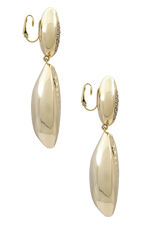 retrofete Vida Shell Earring in Metallic Gold. retrofete Vida Shell Earring in Metallic Gold. Gold-tone metal with pav crystals. Made in China. Clip-on styling. Please note, no piercing required. Measures approx 3.25 dangling. ROFR-WL23. ACC23-7237. Retrofete, launched in 2018 by co-founders Ohad Seroya and Aviad Klin, embodies the glamour and opulence of decades past. Having gained notoriety for its sequin-clad party frocks, the New York-based label has evolved into a collection of daring, top-to-toe designs that seamlessly transform from day to night. Regardless of where she goes, you can count on the Retrofete girl to bring the party. Shop the latest in fashion from retrofete