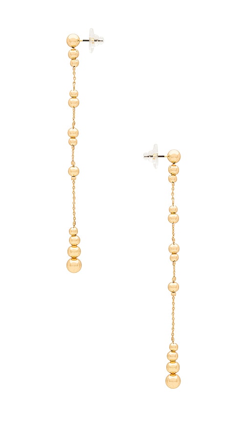 SHASHI Betsy Earring in Metallic Gold. SHASHI Betsy Earring in Metallic Gold. Gold-tone metal. Made in USA. Post-back closure. Measures approx 4 dangling. SHAS-WL823. SH-E1588. In 2009, designers Yuvi Alpert and Danna Kobo debuted Shashi, an everyday jewelry line that holds to the unique quality of their luxury brand Ruby Kobo. As the free-spirited, bohemian-inspired sister collection to their main line, Shashi is fraught with dainty jewels and beaded pieces, architectural rings, and bright friendship bracelets. Pile them on or wear them alone for a style that is all your own. Shop the latest in fashion from SHASHI