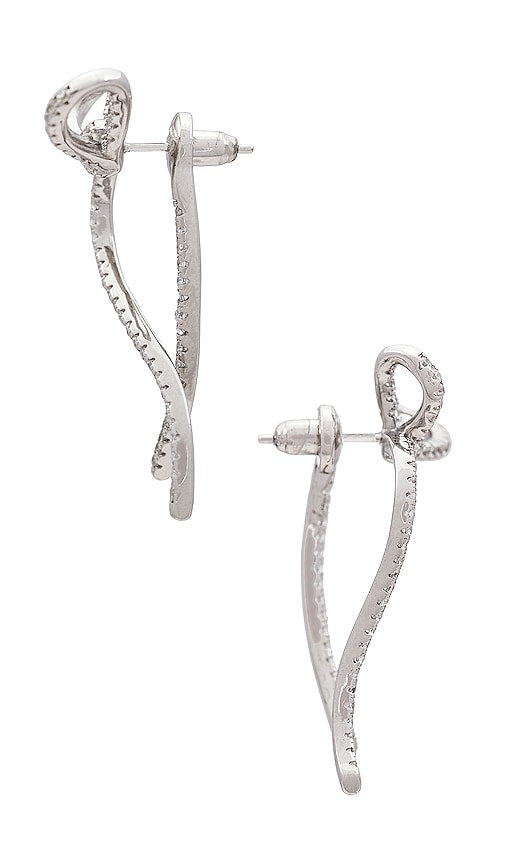 SHASHI Caroline Earrings in Metallic Silver. SHASHI Caroline Earrings in Metallic Silver. Silver-tone metal with pave clear crystals. Made in Turkey. Post-back closure. Measures approx 0.75 W x 1.25 H. SHAS-WL524. SH-E936. In 2009, designers Yuvi Alpert and Danna Kobo debuted Shashi, an everyday jewelry line that holds to the unique quality of their luxury brand Ruby Kobo. As the free-spirited, bohemian-inspired sister collection to their main line, Shashi is fraught with dainty jewels and beaded pieces, architectural rings, and bright friendship bracelets. Pile them on or wear them alone for a style that is all your own. Shop the latest in fashion from SHASHI