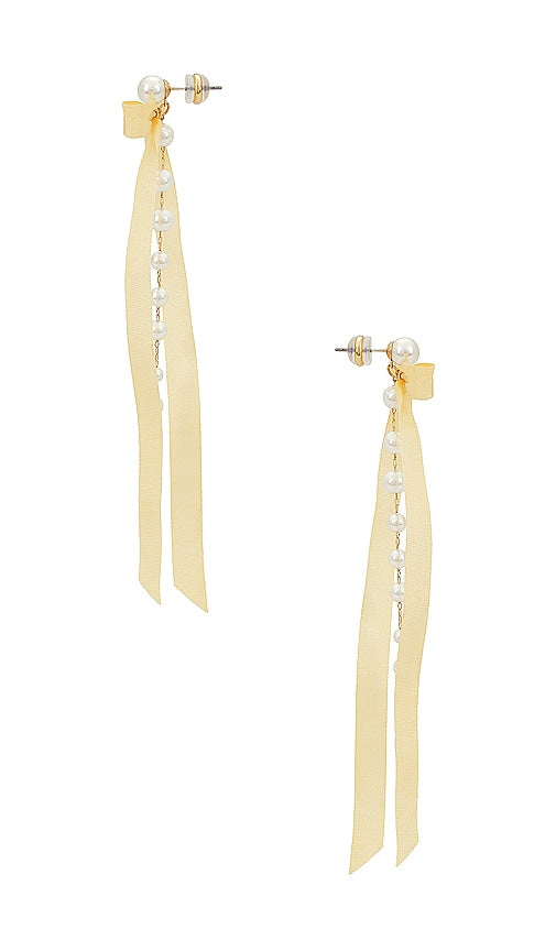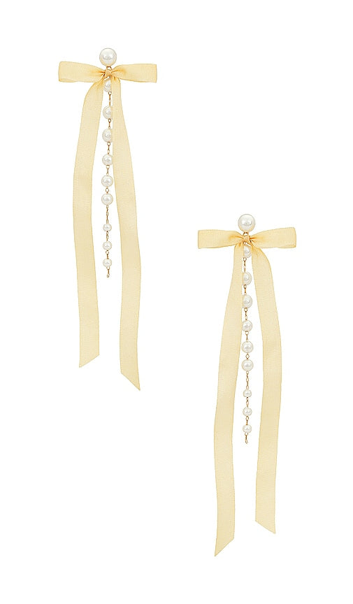 SHASHI Chapel Earring in Ivory. SHASHI Chapel Earring in Ivory. Satin bow earrings with faux pearls. Made in USA. Post-back closure. Measures approx 2.75 dangling. SHAS-WL891. SH-E1579. In 2009, designers Yuvi Alpert and Danna Kobo debuted Shashi, an everyday jewelry line that holds to the unique quality of their luxury brand Ruby Kobo. As the free-spirited, bohemian-inspired sister collection to their main line, Shashi is fraught with dainty jewels and beaded pieces, architectural rings, and bright friendship bracelets. Pile them on or wear them alone for a style that is all your own. Shop the latest in fashion from SHASHI