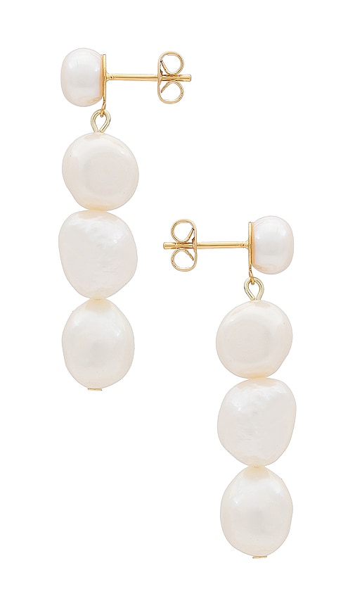 SHASHI Ciel Earring in Ivory. SHASHI Ciel Earring in Ivory. Freshwater pearls on gold-tone hardware. Made in USA. Post-back closure. Measures approx 1.5 dangling. SHAS-WL795. SH-E1578. In 2009, designers Yuvi Alpert and Danna Kobo debuted Shashi, an everyday jewelry line that holds to the unique quality of their luxury brand Ruby Kobo. As the free-spirited, bohemian-inspired sister collection to their main line, Shashi is fraught with dainty jewels and beaded pieces, architectural rings, and bright friendship bracelets. Pile them on or wear them alone for a style that is all your own. Shop the latest in fashion from SHASHI