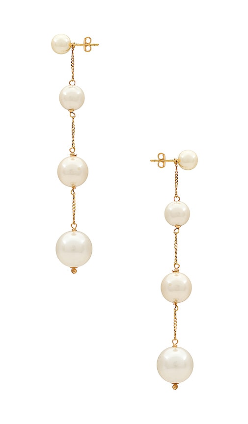 SHASHI Jasmin Drop Earrings in Metallic Gold. SHASHI Jasmin Drop Earrings in Metallic Gold. Faux pearls with gold-tone metal hardware. Made in USA. Post-back closure. Measures approx 3.25 dangling. SHAS-WL711. SH-E1424. In 2009, designers Yuvi Alpert and Danna Kobo debuted Shashi, an everyday jewelry line that holds to the unique quality of their luxury brand Ruby Kobo. As the free-spirited, bohemian-inspired sister collection to their main line, Shashi is fraught with dainty jewels and beaded pieces, architectural rings, and bright friendship bracelets. Pile them on or wear them alone for a style that is all your own. Shop the latest in fashion from SHASHI