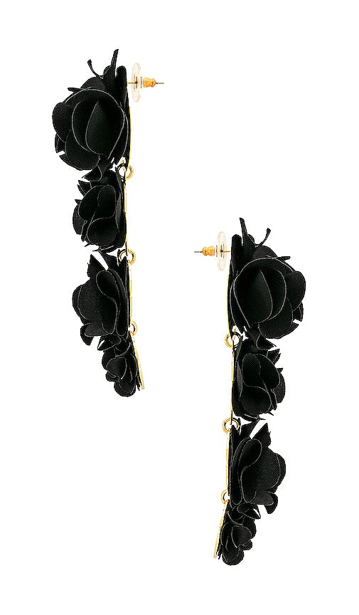SHASHI Lily Earrings in Black. SHASHI Lily Earrings in Black. Textile with gold-plated backing. Imported. Post-back closure. Measures approx 1.75 W x 4 dangling. SHAS-WL413. SH-E596. SHASHI | Easy to wear elegance. A New York based brand established in 2009. A household name for classic, modern, affordable luxury. SHASHI offers fun, flirty and feminine pieces for all women across the world. Each jewelry piece reflects genuine craftsmanship and true originality. Shop the latest in fashion from SHASHI