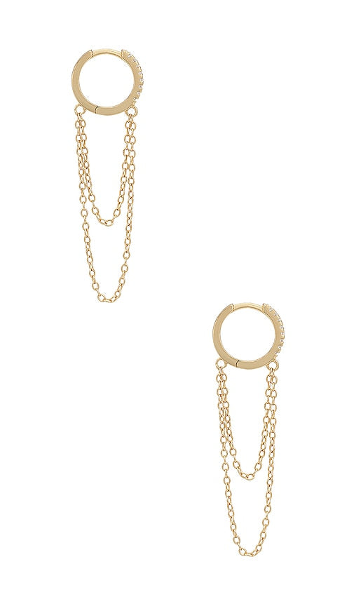 SHASHI Pave Chain Huggie in Metallic Gold. SHASHI Pave Chain Huggie in Metallic Gold. Faux crystal-embellished gold-tone metal hoop and chain. Imported. Hinge closure. Measures approx 0.5 in diameter Measures approx 1.6 dangling. SHAS-WL655. SH-E245. In 2009, designers Yuvi Alpert and Danna Kobo debuted Shashi, an everyday jewelry line that holds to the unique quality of their luxury brand Ruby Kobo. As the free-spirited, bohemian-inspired sister collection to their main line, Shashi is fraught with dainty jewels and beaded pieces, architectural rings, and bright friendship bracelets. Pile them on or wear them alone for a style that is all your own. Shop the latest in fashion from SHASHI