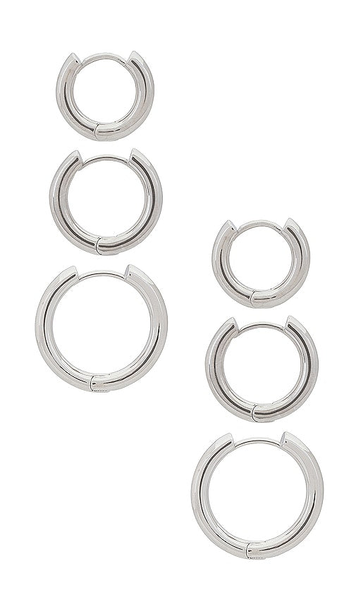 SHASHI Triples Hoop Set in Metallic Silver. SHASHI Triples Hoop Set in Metallic Silver. Silver-tone metal hoops. Imported. Hinge closure. Set of three. Measures approx 0.3-0.75 in diameter. SHAS-WL664. SH-E002-WG. In 2009, designers Yuvi Alpert and Danna Kobo debuted Shashi, an everyday jewelry line that holds to the unique quality of their luxury brand Ruby Kobo. As the free-spirited, bohemian-inspired sister collection to their main line, Shashi is fraught with dainty jewels and beaded pieces, architectural rings, and bright friendship bracelets. Pile them on or wear them alone for a style that is all your own. Shop the latest in fashion from SHASHI