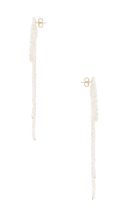 SHASHI Vroom Pearl Earring in White. SHASHI Vroom Pearl Earring in White. Freshwater pearl earrings. Made in USA. Post-back closure. Measures approx 4.75 dangling. SHAS-WL589. SH-E1082. In 2009, designers Yuvi Alpert and Danna Kobo debuted Shashi, an everyday jewelry line that holds to the unique quality of their luxury brand Ruby Kobo. As the free-spirited, bohemian-inspired sister collection to their main line, Shashi is fraught with dainty jewels and beaded pieces, architectural rings, and bright friendship bracelets. Pile them on or wear them alone for a style that is all your own. Shop the latest in fashion from SHASHI