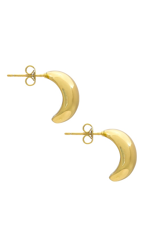 SHASHI X Revolve Crescent Hoops in Metallic Gold. SHASHI X Revolve Crescent Hoops in Metallic Gold. Gold-tone metal. Made in USA. Post-back closure. SHAS-WL637. SH-E1258-LG-Gold. In 2009, designers Yuvi Alpert and Danna Kobo debuted Shashi, an everyday jewelry line that holds to the unique quality of their luxury brand Ruby Kobo. As the free-spirited, bohemian-inspired sister collection to their main line, Shashi is fraught with dainty jewels and beaded pieces, architectural rings, and bright friendship bracelets. Pile them on or wear them alone for a style that is all your own. Shop the latest in fashion from SHASHI