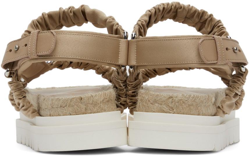 Grained lambskin sandals in pink. Open round toe. Gathering and ruching at straps. Adjustable ankle strap with post-stud fastening. Gold-tone logo stamp at leather footbed. Braided jute midsole in beige. Treaded rubber platform outsole in white. Silver-tone hardware. Approx. 2 platform. Supplier color: Praline Upper: textile, lambskin. Sole: rubber. Brand: 3.1 Phillip Lim