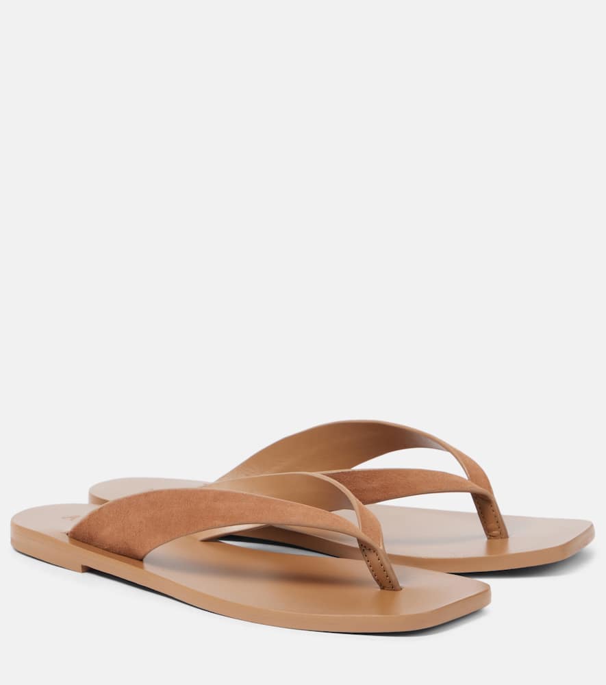 Upper: leather. Lining: leather. Sole: rubber insole and sole. Toe shape: square open toe. Made in India. Includes: dust bag, shoe box. Designer color name: Nutmeg Suede. Shop the latest A.Emery Flat Sandals for women now.