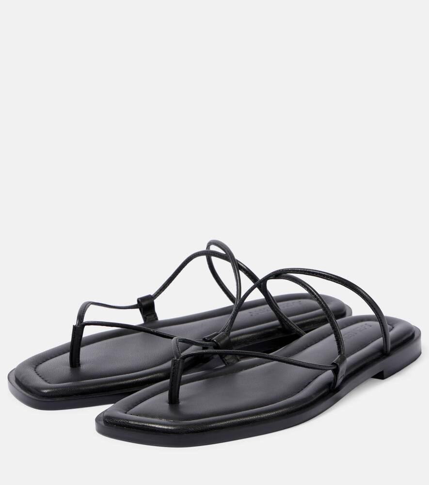 Upper: leather. Lining: leather. Sole: leather insole and sole. Toe shape: square open toe. Made in India. Includes: dust bags, shoe box. Designer color name: Black. Shop the latest A.Emery Flat Sandals for women now.