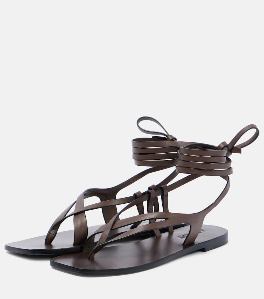 Upper: leather. Lining: leather. Sole: leather insole and sole. Toe shape: split toe. Made in India. Includes: shoe box, dust bags. Designer color name: Walnut. Closure: lace-up. Shop the latest A.Emery Flat Sandals for women now.