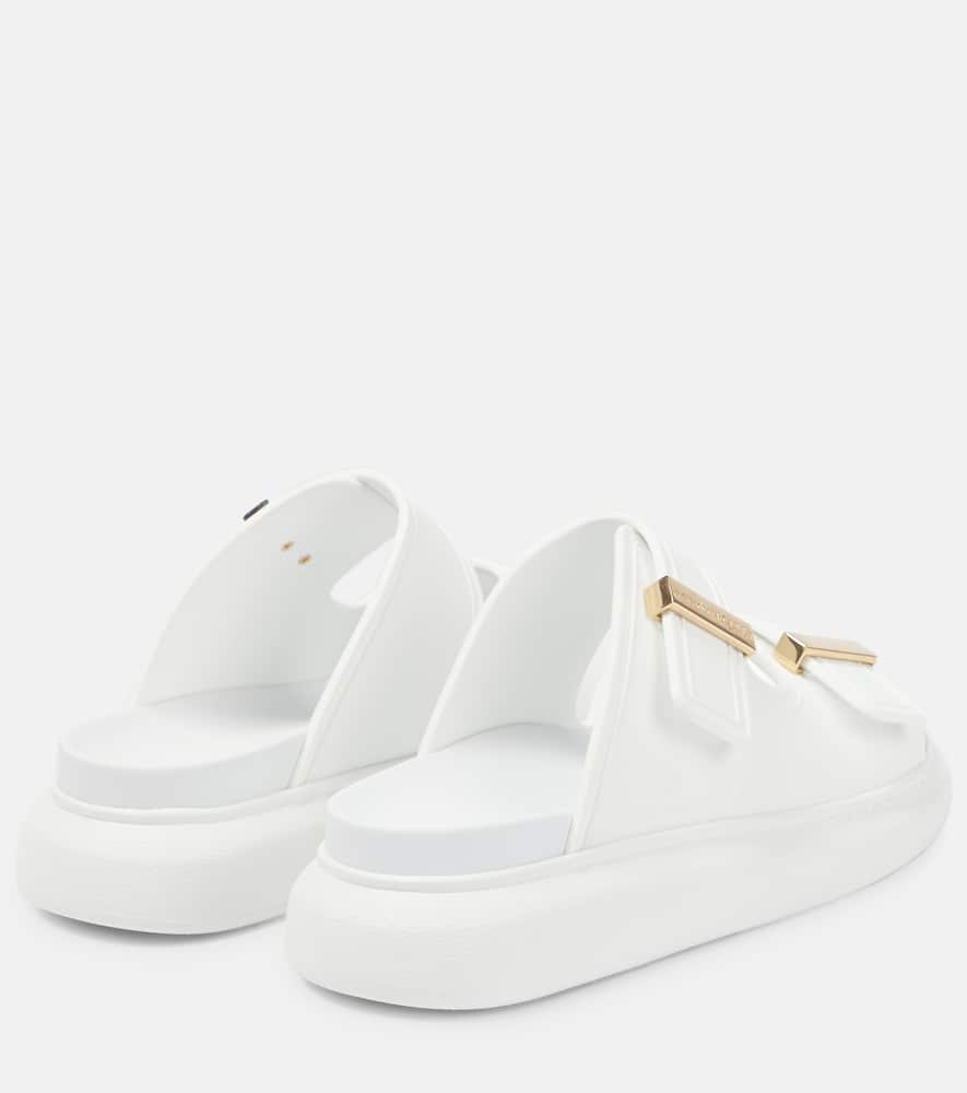 Toe shape: round open toe. Lining: rubber. Closure: faux-buckle fastening. Upper: rubber. Comes with a box. Designer color name: New Ivory. Sole: rubber insole and sole. Made in Italy. Comes with dust bag. Shop the latest Alexander McQueen Flat Sandals for women now.