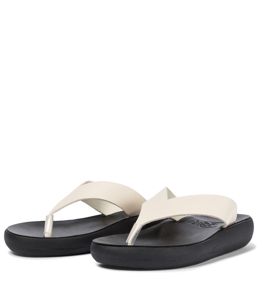 Toe shape: round open toe. exclusive to mytheresa.com. Lining: leather. Sole: leather insole, rubber sole. Upper: calf leather. Designer color name: Off White/Black Sole. Handmade in Greece. Shop the latest Ancient Greek Sandals Flat Sandals for women now.