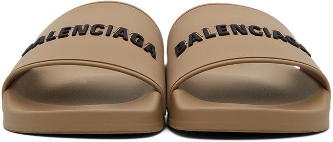 Balenciaga Beige Logo Pool Slides
