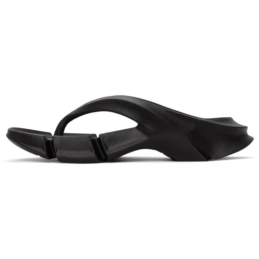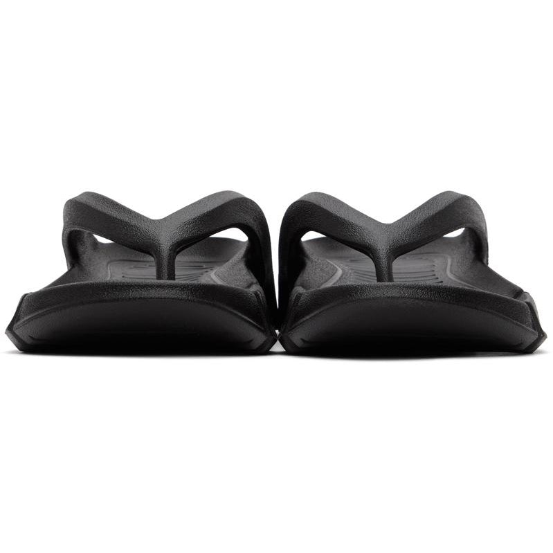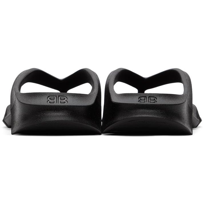 EVA rubber slip-on sandals in black. Open round toe. Tonal thong-style strap. Textured molded rubber footbed. Logo embossed at heel. Treaded rubber outsole. Supplier color: Black Rubber. Brand: Balenciaga