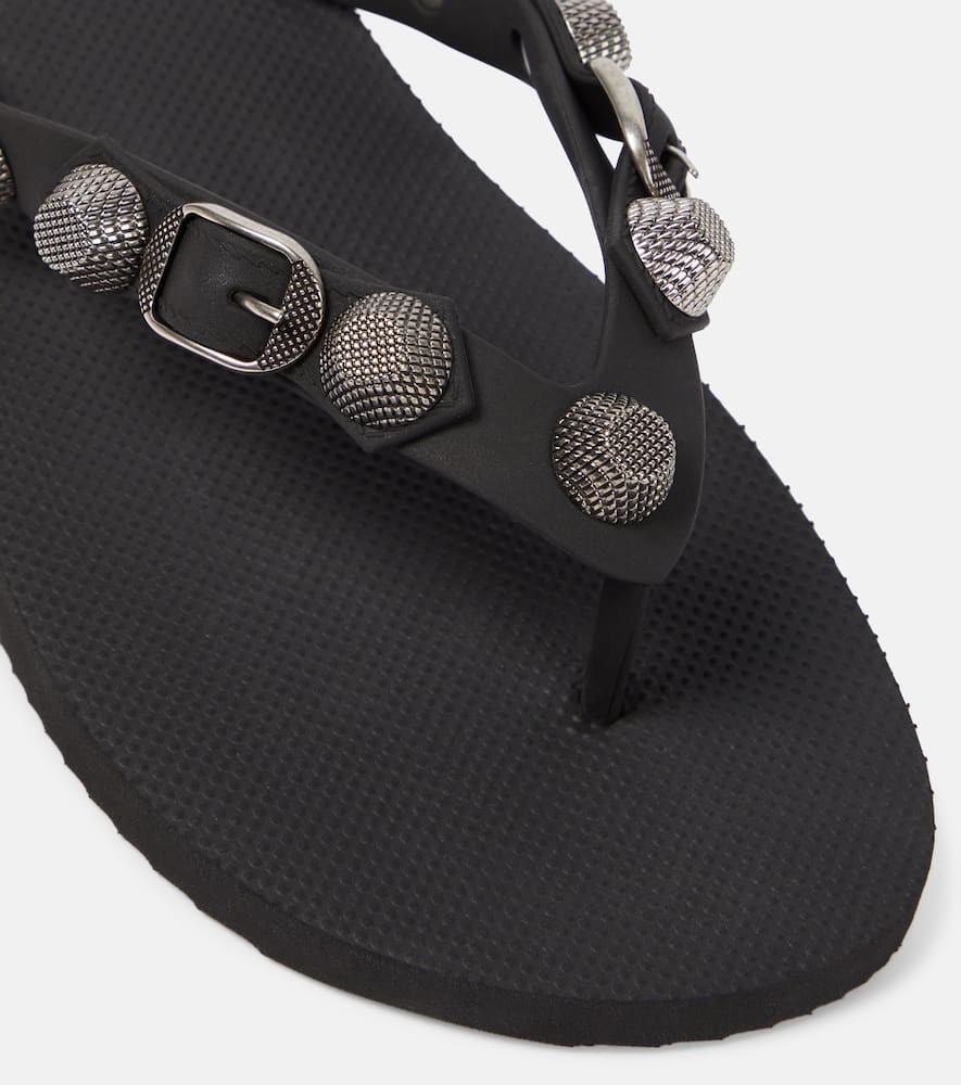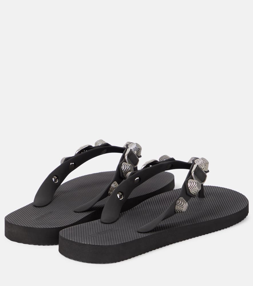 Upper: rubber. Lining: rubber. Sole: rubber insole and sole. Toe shape: round open toe. Made in Italy. Includes: shoe box, dust bag. Designer color name: Black/Silver. Shop the latest Balenciaga Flat Sandals for women now.