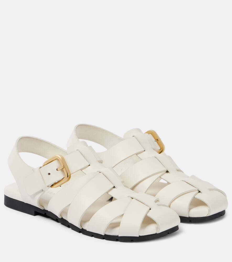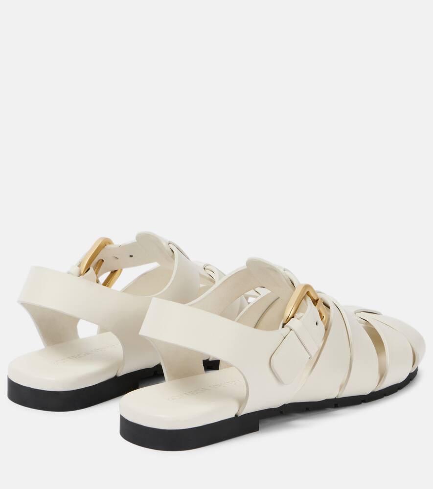 Upper: calf leather. Lining: leather. Sole: leather insole, rubber sole. Toe shape: round toe. Made in Italy. Includes: shoe box, dust bag. Designer color name: White. Closure: buckle fastening. Shop the latest Bottega Veneta Flat Sandals for women now.