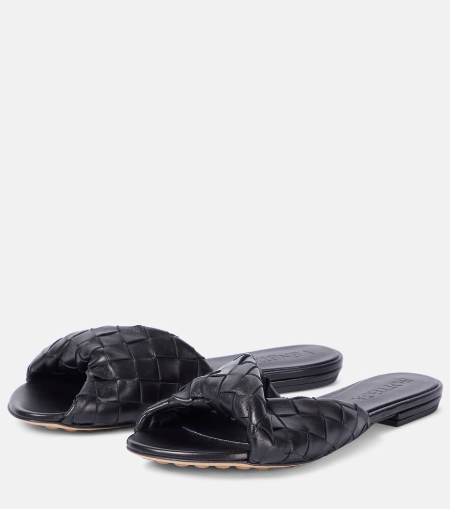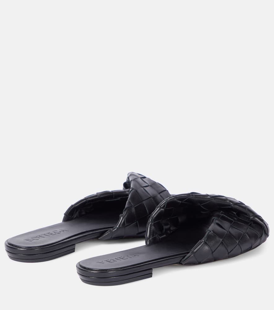 Upper: leather. Lining: leather. Sole: leather insole, rubber sole. Toe shape: round open toe. Made in Italy. Includes: shoe box. Designer color name: Black. Shop the latest Bottega Veneta Flat Sandals for women now.