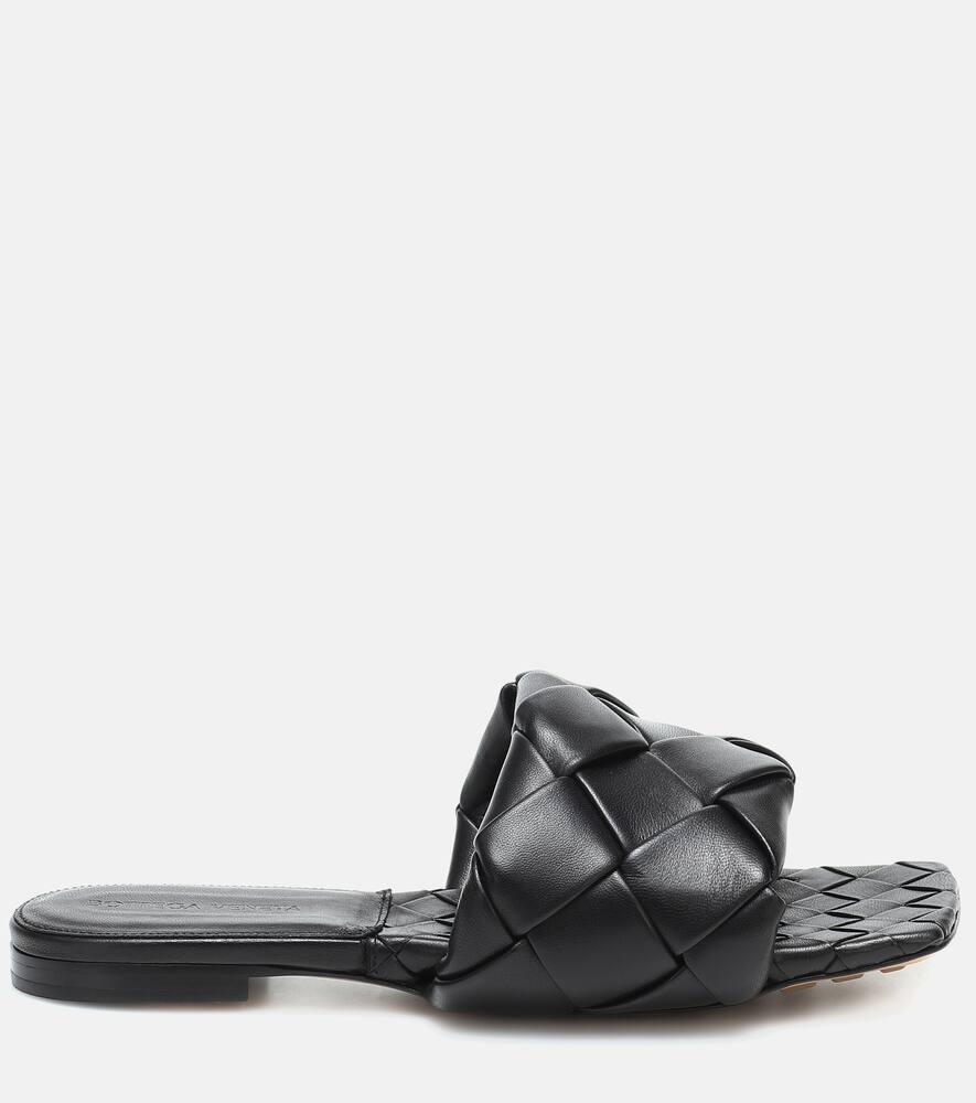 Lining: leather. Upper: lamb leather. Sole: leather insole, leather and rubber sole. Toe shape: square open toe. Made in Italy. Designer color name: Nero. Shop the latest Bottega Veneta Flat Sandals for women now.