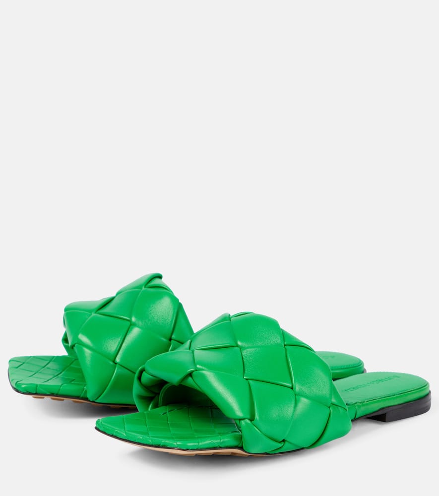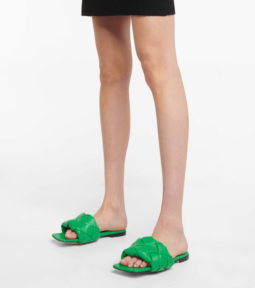 Sole: leather insole, leather and rubber sole. Upper: lamb leather. Toe shape: square open toe. Made in Italy. Lining: lamb leather. Designer color name: Grass. Shop the latest Bottega Veneta Flat Sandals for women now.