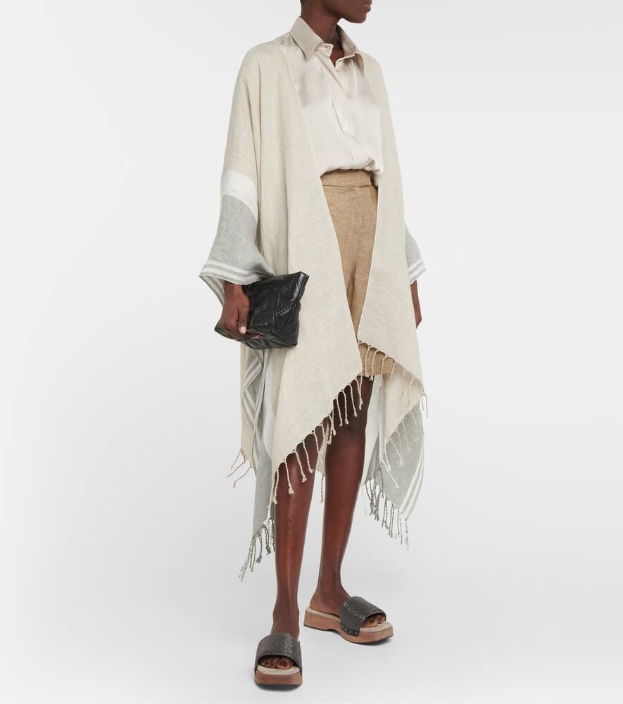 Lining: leather. Sole: leather insole, rubber sole. Made in Italy. Comes with dust bag, Comes with a box. Upper: fabric. Designer color name: Darg Beige. Trim: cow leather. Toe shape: square open toe. Shop the latest Brunello Cucinelli Flat Sandals for women now.