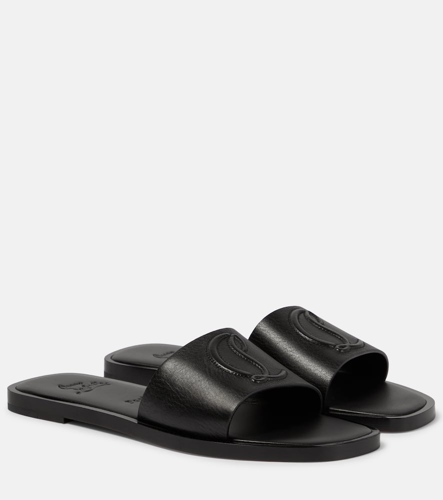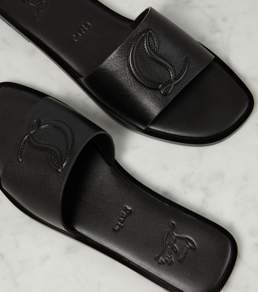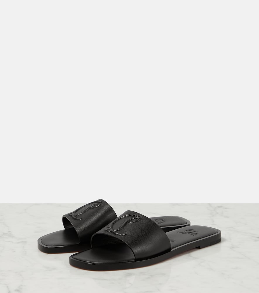 Toe shape: round open toe. Comes with dust bag. Sole: leather insole and sole. Upper: leather. Designer color name: Black/Lin Black. Comes with a box. Made in Italy. Shop the latest Christian Louboutin Flat Sandals for women now.