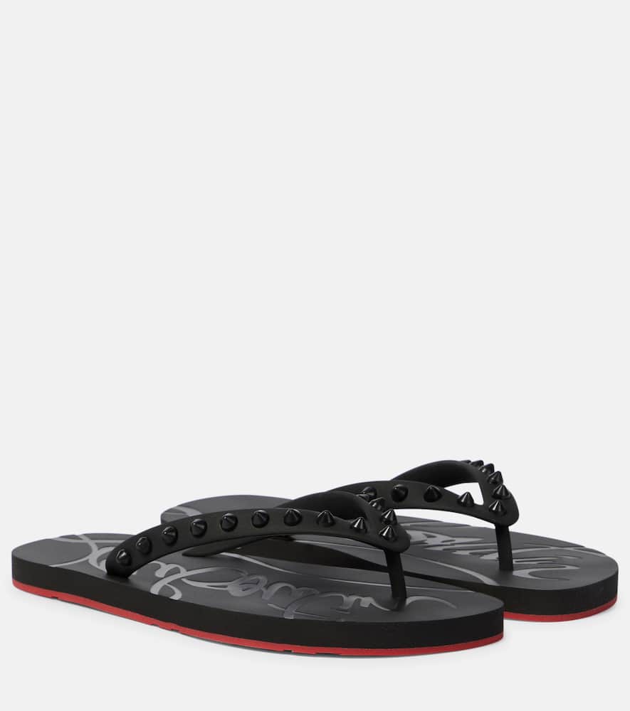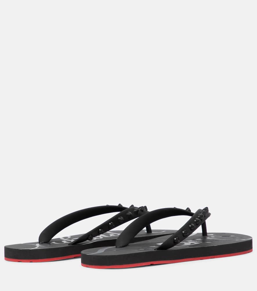 Toe shape: round open toe. Made in Italy. Designer color name: Black. Shop the latest Christian Louboutin Flat Sandals for women now.