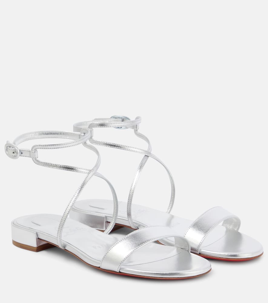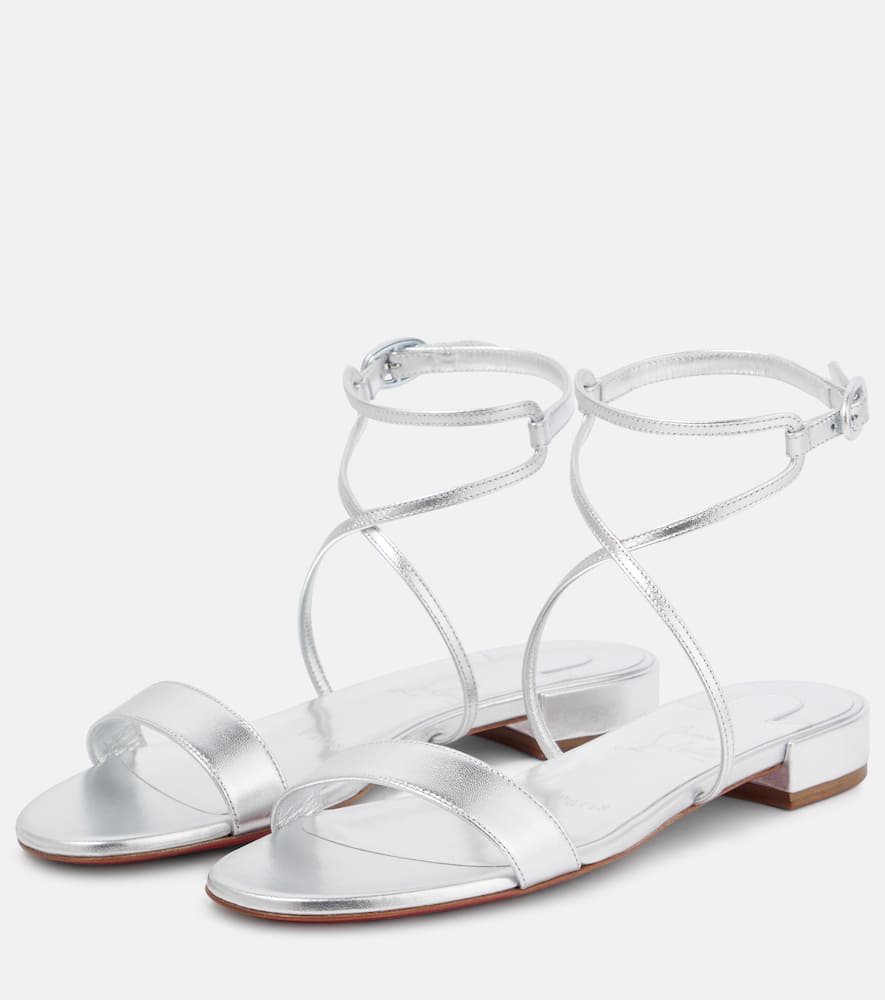 Upper: leather. Lining: leather. Sole: leather insole and sole. Toe shape: round open toe. Made in Italy. Includes: dust bags, shoe box. Designer color name: Silver/Lin Silver. Closure: buckle-fastening ankle strap. Shop the latest Christian Louboutin Flat Sandals for women now.