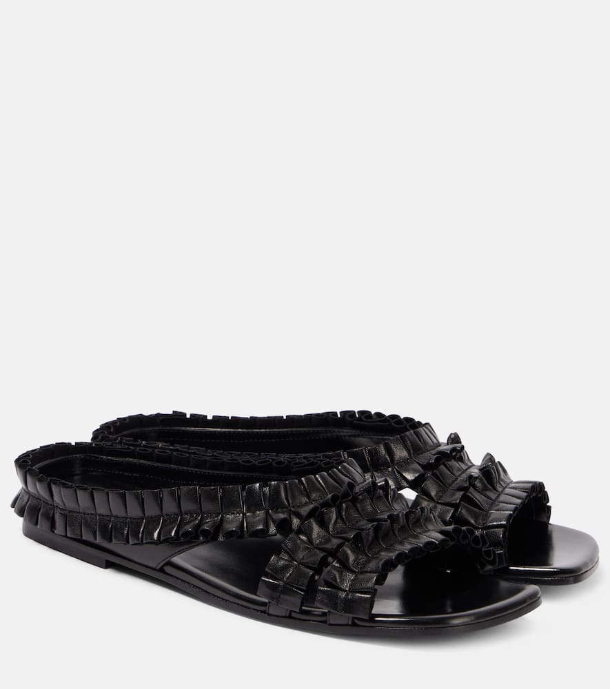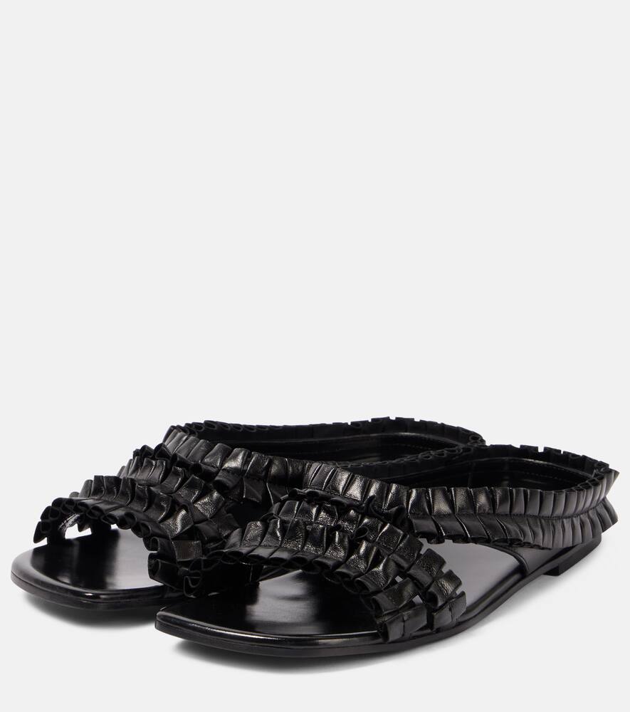 Upper: leather. Lining: leather. Sole: leather insole and sole. Toe shape: square open toe. Made in Italy. Includes: shoe box, dust bag. Designer color name: Black. Shop the latest Dries Van Noten Flat Sandals for women now.