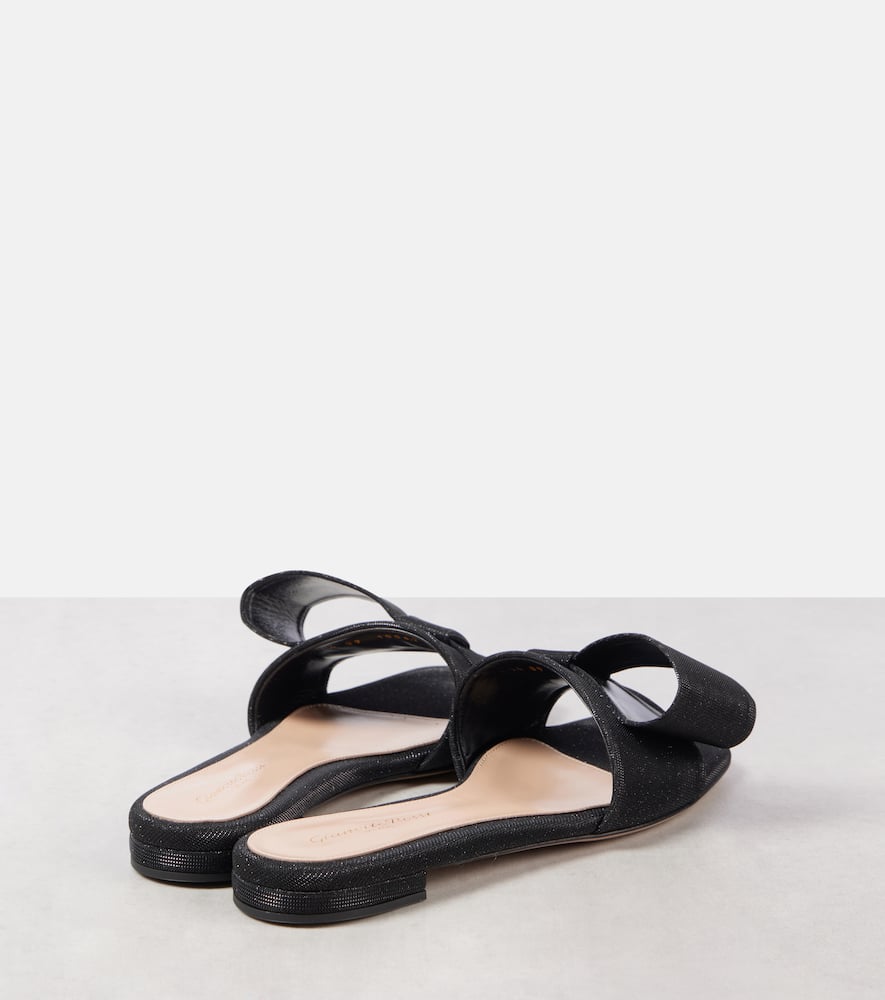 Upper: fabric. Lining: leather. Sole: leather insole and sole. Toe shape: square open toe. Made in Italy. Includes: shoe box, dust bag. Designer color name: Black. Shop the latest Gianvito Rossi Flat Sandals for women now.