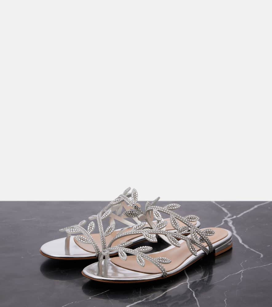 Upper: fabric. Lining: leather. Sole: leather insole and sole. Toe shape: round open toe. Made in Italy. Includes: shoe box, dust bags. Designer color name: Silver+Silver. Shop the latest Gianvito Rossi Flat Sandals for women now.