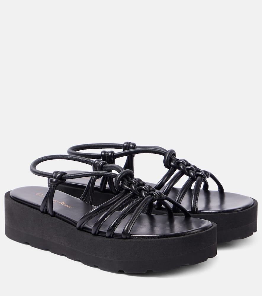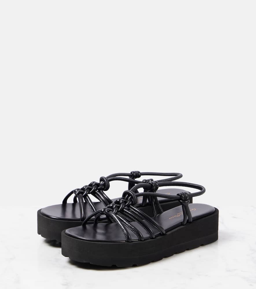 Upper: leather. Lining: leather. Sole: leather insole, rubber sole. Toe shape: round open toe. Made in Italy. Includes: shoe box, dust bag. Designer color name: Black. Shop the latest Gianvito Rossi Flat Sandals for women now.