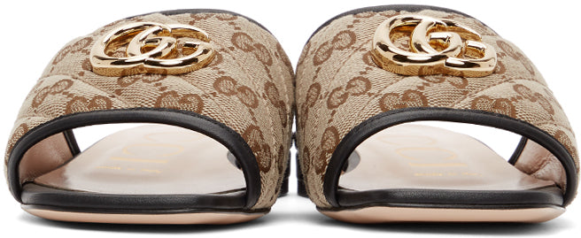 Gucci Beige Canvas GG Slides - GUCCI BEIGE Toile GG Diapositives - 구찌 베이지 캔버스 GG 슬라이드