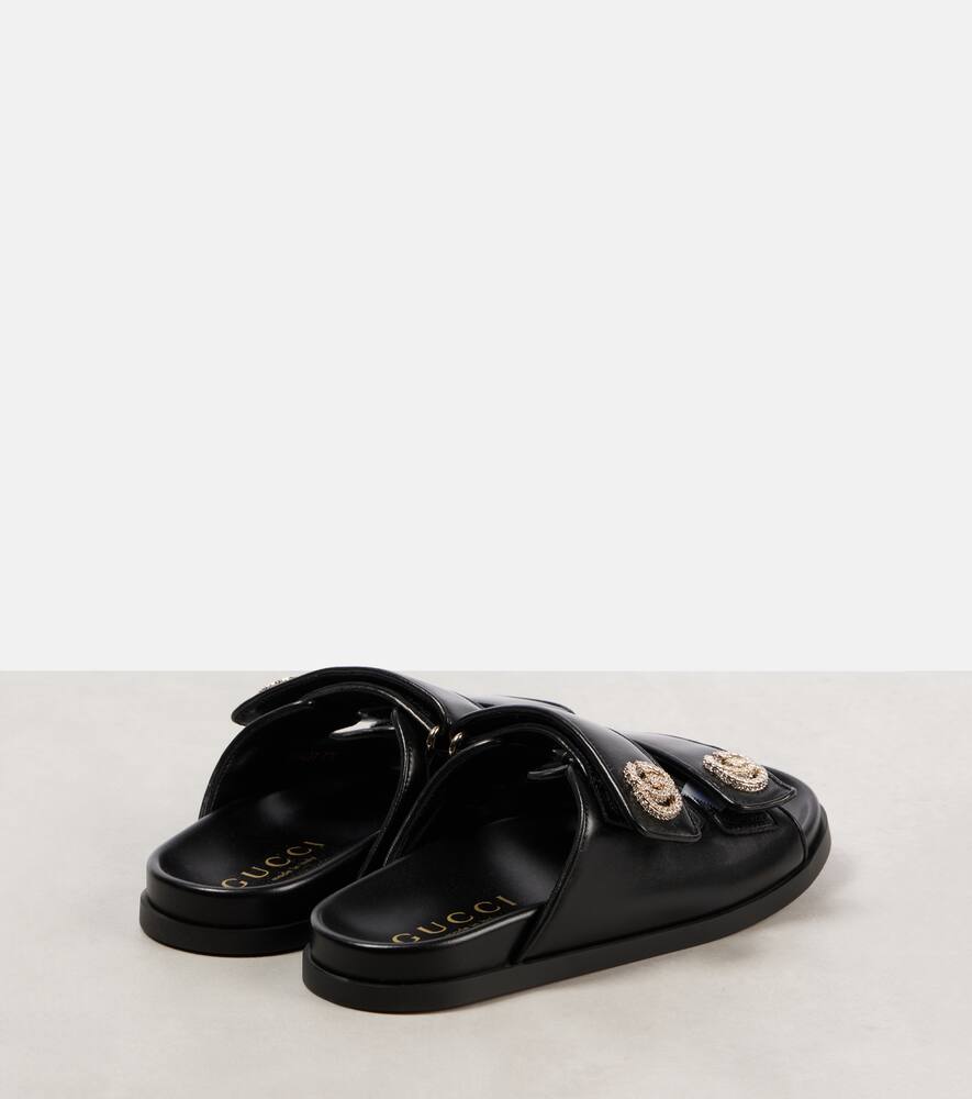 Upper: leather. Lining: leather. Sole: leather insole, rubber sole. Toe shape: square open toe. Made in Italy. Includes: shoe box, dust bags. Designer color name: Black/Black. Closure: VELCRO® fastening. Hardware color: silver. Shop the latest Gucci Flat Sandals for women now.